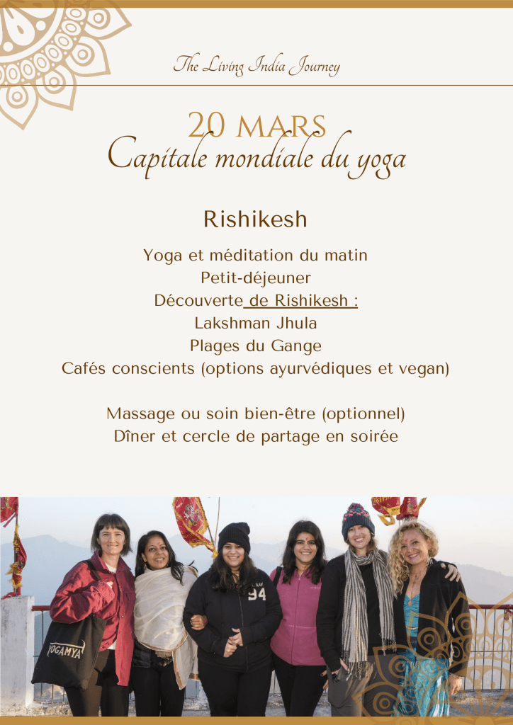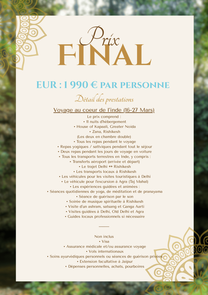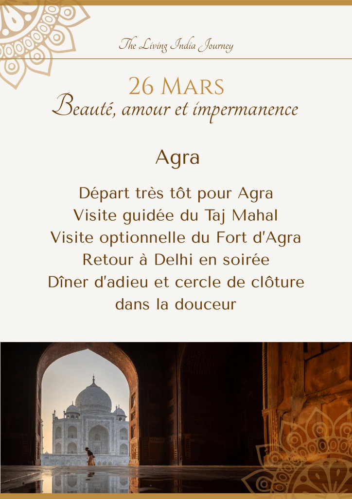 - Où : Delhi, Rishikesh, et Agra (Taj Mahal)