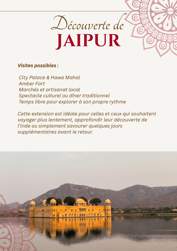 - Inclusions : 11 nuits (12 jours) en Inde du nord