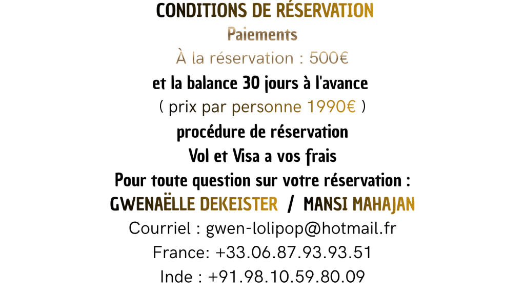 * stages en France et ailleurs -> nombreux séjours en Inde, chamanisme en Colombie/Équateur/Pérou….